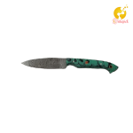This hunting knife features a fixed blade design for strength and durability. The material used in the manufacturing of the blade is Damascus with Twist.