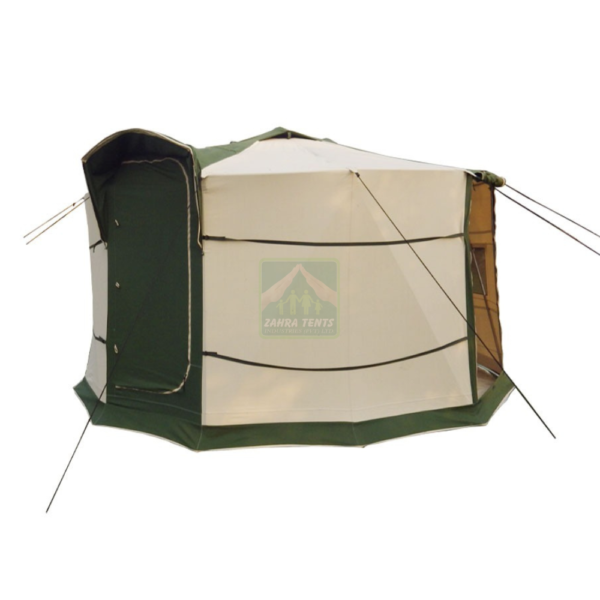 Yurt Tent is the king of camping tents. Camp in comfort and style with this rugged and versatile, full-featured, canvas cabin tent, ideal for those extended use occasions. Made with premium grade, Poly Cotton Canvas. The tight weave and silicone finish make this canvas watertight, yet breathable. Glamping vacations are the ultimate fun. Yurt-style tents provide big housing for a friend’s group or family to sleep. Beds, chairs, a table, carpets, and shades can all be added to the interior. For superior comfort, the Yurt Tents can be outfitted with a heating and cooling system.